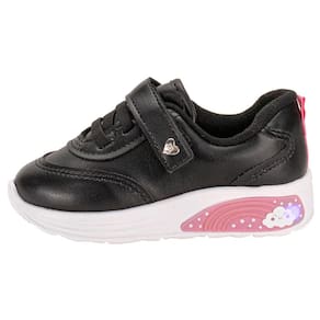 O Tênis Infantil Feminino Baby Led Molekinha é confeccionado em Napa Turim com acabamento em costura, fechamento por tira aderente e cadarço, forro interno em têxtil, palmilha em PU e solado em borracha com luz de Led que acende a cada passo.
