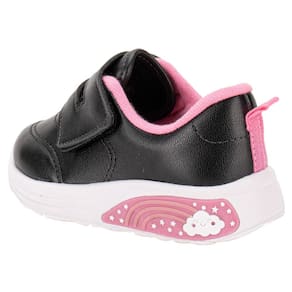 O Tênis Infantil Feminino Baby Led Molekinha é confeccionado em Napa Turim com acabamento em costura, fechamento por tira aderente, forro interno em têxtil, palmilha em PU e solado em borracha com luz de Led que acende a cada passo.