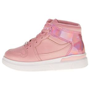 O Tênis Infantil Cano Alto Molekinha! Desenvolvido para proporcionar conforto e estilo. Confeccionado em Napa Turim, Metal Glamour e Holográfico, forrado em têxtil. A palmilha em PU é macia e acolchoada, enquanto o solado em borracha oferece segurança em cada passo.