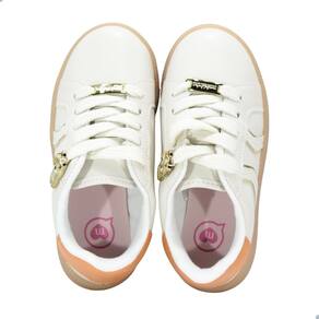 Descubra o tênis infantil casual Molekinha, perfeito para acompanhar o dia a dia das crianças com conforto e modernidade. Com design clean em branco e detalhes em caramelo na parte traseira, ele combina facilmente com diversas roupas, tornando-se o calçado ideal para passeios, escola e brincadeiras.