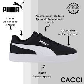 Detalhes: Silhueta baixa, Cabedal em material sintético com detalhe e sobreposição na ponta do tênis.Entressola elevada de borracha, sola de borracha, fechamento de cadarço para o encaixe ideal, perfurações na parte superior do cabedal, Logo puma na língua, Faixa puma Formstrip nas laterais, Logo puma no calcanhar.