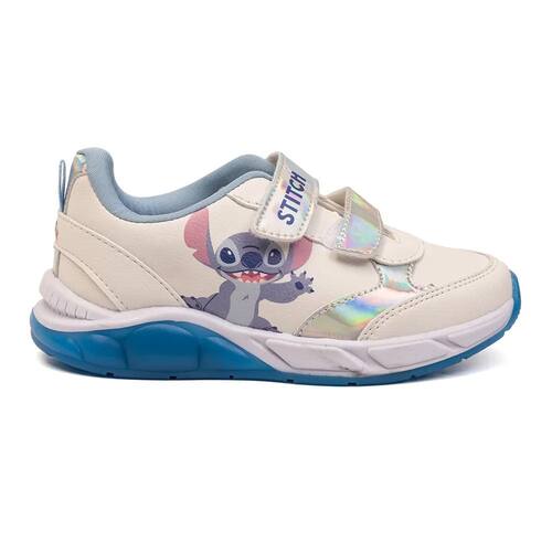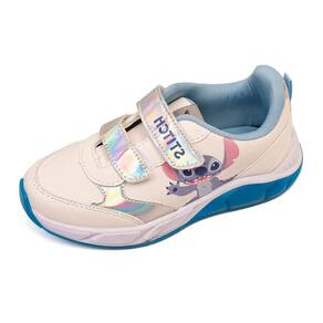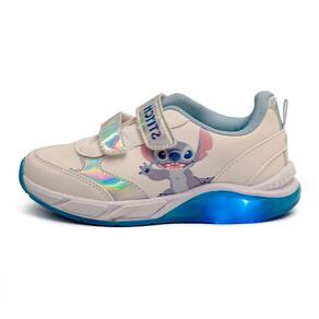 Detalhe: Estampa do personagem Stitch, Solado com luzes LED, Detalhes iridescentes/holográficos.