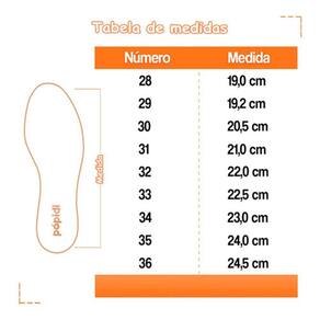 Material Externo: Sintético Material Interno: Têxtil Material da Palmilha: EVA Borracha Material da Sola: Microexpandido Antiderrapante Fechamento: Cadarço Embalagem: Caixa individual