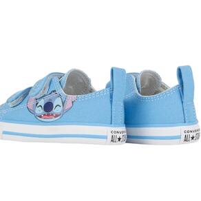 O clássico Chuck Taylor All Star na versão kids recebeu um toque de mágica na coleção Converse x Disney. Para celebrar uma das animações mais amadas nos últimos 22 anos, Lilo & Stitch , a Converse apresenta a coleção Stich, trazendo referências à criaturinha mais fofa do mundo cinematográfica para o dia a dia. Confeccionado em tecido tipo lona de algodão, o modelo traz o rosto de Stitch aplicado na lateral externa, costuras duplas e forro interno acolchoado para maior conforto. O fechamento é feito com duas tiras autocolantes e possui puxador no calcanhar para facilitar o calçar. O logo Converse All Star é aplicado na língua, enquanto a Heel Logo é aplicada no calcanhar. O solado vulcanizado garante a aderência adequada ao caminhar.