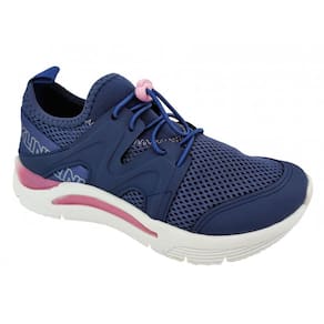 * Cabedal em sintético e tela têxtil;* Bico redondo;* Calce fácil;* Ajuste por cadarço elástico com regulagem;* Interior macio em têxtil;* Lingueta integrada;* Palmilha removível em EVA com forração em têxtil;* Medida do solado 3cm, emborrachado, leve e flexível;* Calçado anatômico.