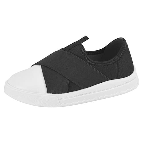 O cabedal é confeccionado em material sintético resistente e confortável, garantindo durabilidade e proteção mesmo com o uso contínuo. Já o solado antiderrapante, com dois centímetros de altura, oferece mais estabilidade e firmeza ao caminhar, além de dar um toque moderno ao visual.