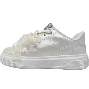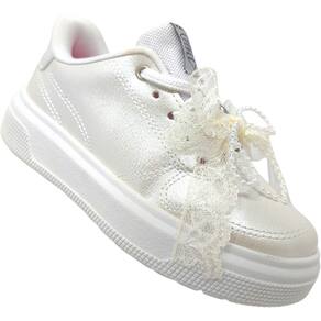 Ideal para passeios, escola e momentos urbanos, este tênis infantil feminino une praticidade e delicadeza para acompanhar a rotina das pequenas com muito charme. Sua paleta em tom perolado traz um toque moderno e sofisticado, enquanto o detalhe em laço de renda com pérolas adiciona feminilidade e personalidade única ao calçado.