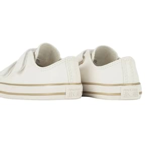 O clássico Chuck Taylor All Star em sua versão kids chega nesta coleção Taylored com inspiração na elegância transmitida pela alfaiataria. É confeccionado em material sintético, possui fechamento autocolante, e puxador no calcanhar para facilitar o calçar. O logo Converse All Star é aplicado na língua, enquanto a Heel Logo é aplicada no calcanhar. O solado vulcanizado garante a aderência adequada ao caminhar.