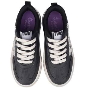 Tênis feminino em sintético preto, com recorte em glitter flocado prata TWN bordado na lateral e pintura degradê metalizada no solado, inovador e descolado para as meninas arrasarem nos rolês. Tênis com forro interno que ajuda a absorver o suor e espuma macia no calcanhar para maior conforto. A palmilha conta com o sistema "Gel System" que absorve o impacto no calcanhar. O fechamento é em cadarço, possibilitando diversas amarrações. O solado é feito de material micro, leve e proporciona muita aderência e estabilidade, além de ser flexível, resistente a temperaturas e ter alto desempenho antiderrapante.