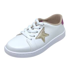 O toque especial fica por conta do detalhe metalizado, que dá um brilho extra ao visual. Com estrelas na lateral e na parte traseira, o tênis ganha um ar moderno e divertido, perfeito para quem gosta de estar na moda.