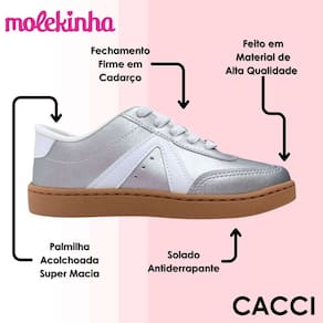 Deixe sua pequena brilhar com o Tênis Molekinha o toque perfeito de estilo e conforto para todas as ocasiões! Com um design encantador e pensado especialmente para acompanhar as meninas em seus melhores momentos, este tênis é a escolha ideal para quem busca beleza, praticidade e conforto em um só produto. Seja para a escola, passeios ou brincadeiras, ele garante bem-estar e muito charme em cada passo.
