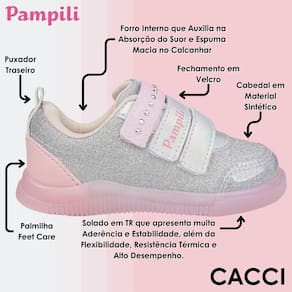 Calce fácil em tira autocolante, dando autonomia para as meninas e facilitando o calce para as mamães. Tênis com solado em TR que apresenta muita aderência e estabilidade, além da flexibilidade, resistência térmica e alto desempenho.