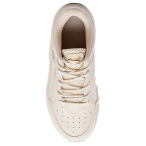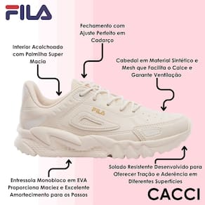 Cabedal em material sintético + mesh: facilita o calce e garante ventilação.