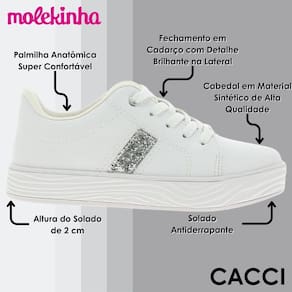 Os tênis Molekinha para meninas, com seu encantador modelo de plataforma e delicados detalhes cintilantes nas laterais, são simplesmente irresistíveis. Com um design que combina conforto e estilo, esses tênis são a escolha perfeita para as pequenas fashionistas que desejam um toque de brilho em seus passos. Além disso, a versatilidade desses calçados permite que eles se adaptem a uma variedade de looks, desde os mais casuais até os mais elegantes, tornando-os um item essencial no guarda-roupa das garotas que adoram estar na moda. Com os tênis Molekinha plataforma, elas podem desfilar com confiança e charme, proporcionando uma dose extra de fofura a qualquer visual.