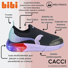 Além disso, o solado conta com luzes multicoloridas que piscam a cada passo, encantando as crianças.