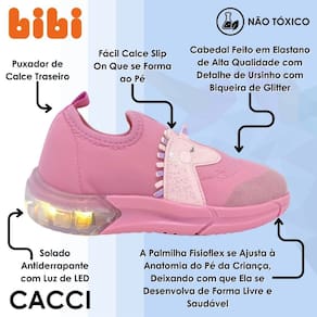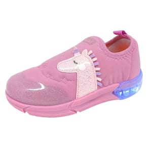 A palmilha com tecnologia Fisioflex proporciona a sensação de andar descalço, promovendo conforto prolongado e contribuindo para o desenvolvimento natural dos pés. O sistema slip on facilita o calce, permitindo que as meninas coloquem e tirem o tênis sozinhas, incentivando a autonomia. O grande destaque fica por conta do solado antiderrapante com luzes de LED que piscam a cada passo, garantindo segurança e tornando cada movimento ainda mais divertido. Combinando magia, praticidade e conforto, esse modelo rosa com estampa de unicórnio é perfeito para compor looks encantadores que refletem a alegria de ser criança.