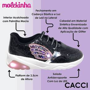 Deixe sua pequena brilhar com o Tênis Infantil Menina de Luz da Molekinha! Um calçado divertido, confortável e cheio de estilo que vai transformar cada passo em um verdadeiro espetáculo. Garanta já o seu!