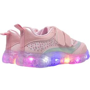 Tênis de led infantil em glitter rosa, com recortes em sintético e aplicação de strass hotfix, moderno e divertido para os pezinhos! Forro interno que auxilia na absorção do suor e espuma no calcanhar para mais conforto. Tênis infantil feminino com palmilha anatômica removível, para maior conforto e cuidado nos primeiros passinhos! Tênis infantil fácil de calçar com abertura através de tia autocolante na parte frontal, dando autonomia para as meninas e facilitando o dia a dia das mamães! Solado translúcido emborrachado com detalhe de borboletas, leve e antiderrapante, para a segurança nas brincadeiras. Led blindado no solado com cores fortes e brilho intenso!