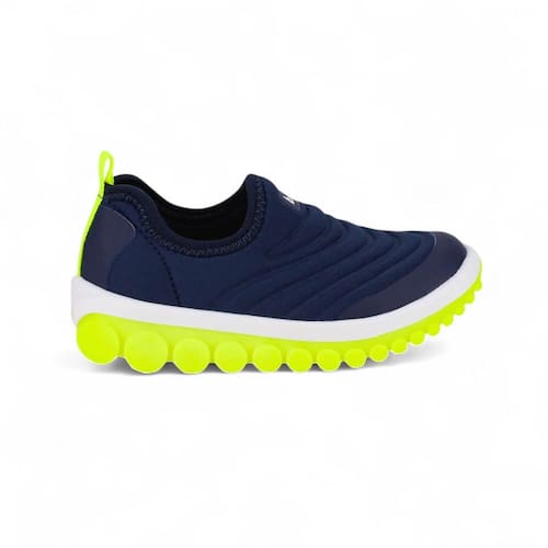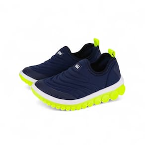 Nosso modelo, nas cores azul naval e amarelo vibrante, é incrivelmente flexível e apresenta um design moderno e dinâmico, ideal para acompanhar os pequenos em todas as suas aventuras. Confeccionado em elastano, um material respirável e de fácil limpeza, este tênis oferece um ajuste excelente ao pé, garantindo conforto durante todo o uso. O solado inovador com rolamentos segue os movimentos do pé, oferecendo um design ainda mais atual e criativo. Possui a palmilha Fisioflex, que é macia e proporciona a sensação de andar descalço, assegurando conforto extremo para as crianças.