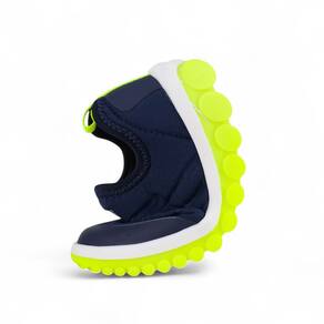 Design Dinâmico e Vibrante: O solado com design exclusivo oferece uma sensação de movimento constante, estimulando a criatividade e a energia das crianças, com um visual moderno em azul naval e amarelo.