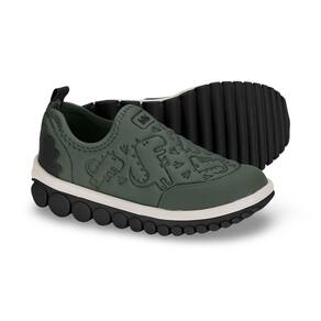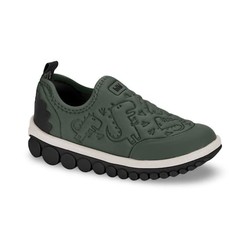 Nosso modelo na cor verde, com detalhes em relevo de dinossauro, apresenta um design moderno, ideal para acompanhar as crianças em todas as suas aventuras. Confeccionado em elastano, um material respirável e de fácil limpeza. Este tênis oferece um ajuste excelente ao pé, garantindo conforto durante todo o uso. O solado inovador com rolamentos segue os movimentos do pé, oferecendo um design ainda mais atual e criativo. Possui a palmilha Fisioflex, que é macia e proporciona a sensação de andar descalço, assegurando conforto extremo para as crianças.