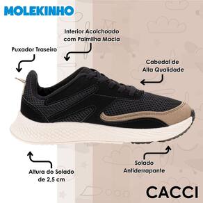 O Tênis Infantil Molekinho foi desenvolvido para acompanhar a energia dos pequenos em todas as atividades do dia a dia, unindo conforto, estilo e praticidade em um único modelo. Seu cabedal de alta qualidade garante resistência e durabilidade, enquanto o design moderno deixa o visual ainda mais cheio de atitude.