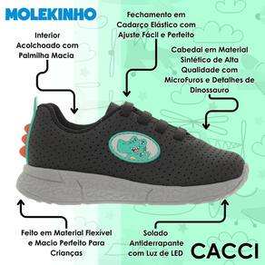 Tênis Infantil Menino Conforto Dinossauro Casual Molekinho - 21 - Preto