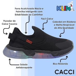 E claro, impossível não notar o solado com luz de LED, que brilha a cada passo e transforma a caminhada em uma brincadeira divertida. Além do visual atrativo, ele conta com base antiderrapante, ideal para dar mais segurança em diferentes tipos de superfície. Um calçado completo para quem está sempre em movimento e precisa de um aliado que acompanhe o ritmo da infância com leveza, segurança e muito estilo.