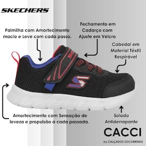 A criançada também merece todo o conforto do Tênis Skechers Infantil Comfy Flex. Seu cabedal é feito em material têxtil e mesh, proporcionando respirabilidade. A palmilha Goga Mat é acolchoada e anatômica, absorvendo os impactos das corridas, pulos e brincadeiras dos pequenos.