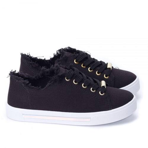 Confeccionado em lona com acabamento esfiapado na abertura para o pé, o Tênis Molekinha é um arraso!