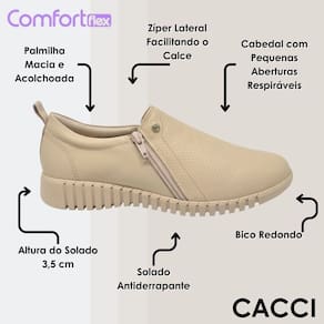 O Tênis Comfortflex confeccionado em material sintético, possui seu cabedal inteiro com pequenas aberturas permitindo a respiração dos pés.