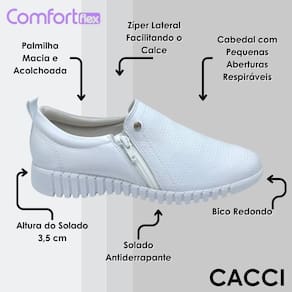 O Tênis Comfortflex confeccionado em material sintético, possui seu cabedal inteiro com pequenas aberturas permitindo a respiração dos pés.