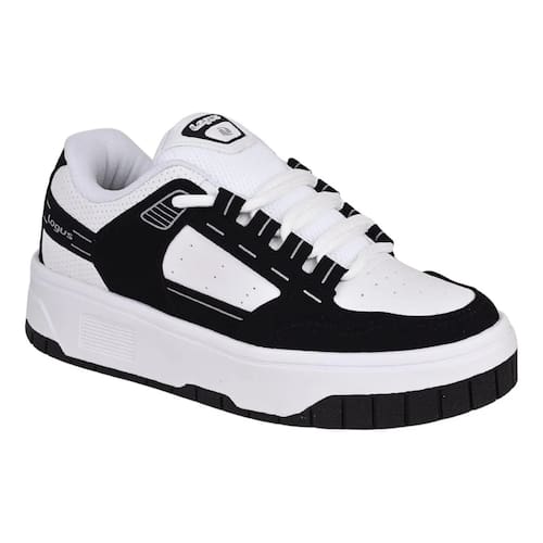 Descubra o Tênis Logus 22570P: design moderno branco e preto, conforto superior para o dia a dia. Estilo e qualidade para o homem atual.