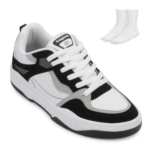 Nome: Tênis Logus Sneaker e Meia LG24-22340P. Gênero: Masculino. Indicado Para: Dia a Dia Ocasião: Estilo/Casual. Material Externo: Alternativo/Nobuck. Material Interno: Têxtil acolchoado. Detalhe: Recortes e costuras por todo cabedal. Fechamento: Cadarço. Palmilha: EVA forrada. Entressola: EVA. Solado: Borracha antiderrapante. Tipo de Pisada: Neutra. Peso do Produto: 1.065 kg (o peso varia de acordo com a numeração). Garantia do Fabricante: Contra defeito de fabricação. Origem: Nacional. Código Produto: 01024700. Marca: Logus. Acompanha um par de meias tamanho 37 ao 43. Composição: 83 % Algodão. 12 % Poliamida. 05 % Elastodieno.