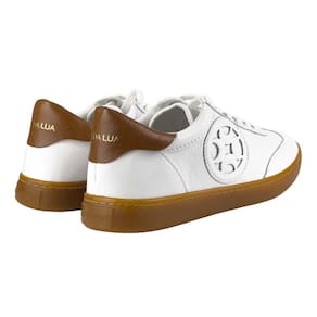 O Tênis Luz da Lua Logo Lateral Solado Caramelo aposta no visual clean com logo em relevo na lateral e detalhe contrastante no calcanhar. O ajuste por cadarço garante encaixe seguro, enquanto a entressola leve e a base estável proporcionam conforto e tração no dia a dia. Versátil, transita do jeans às produções mais alinhadas com um toque urbano e moderno.