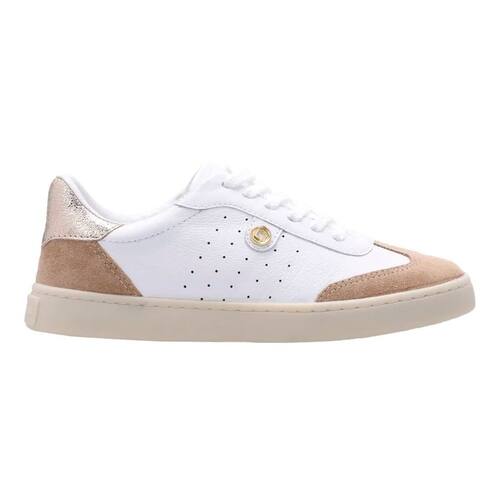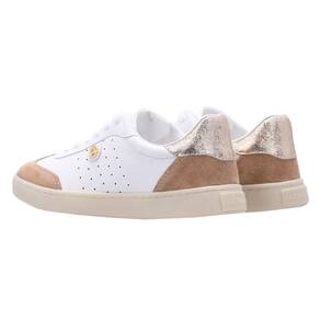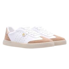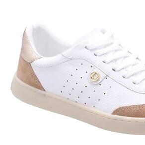 Tênis com cabedal em premium. Possui enfeite de metal delicado no lado externo. Fechamento de amarração com atacador. Sola com caixa reta de TR.