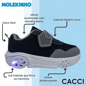 O Tênis Luz Molekinho é perfeito para meninos cheios de energia que adoram unir conforto, estilo e um toque de diversão. Com um design moderno e detalhes luminosos na sola, ele transforma cada passo em uma experiência ainda mais divertida, chamando atenção por onde passa.