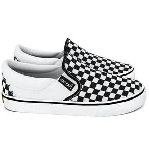 O Tênis Mad Rats Quadriculado Slip On Branco é a escolha ideal para quem busca conforto e estilo no dia a dia. Com um design prático e moderno, esse modelo Slip On da Mad Rats é perfeito para os fins de semana, proporcionando facilidade e agilidade ao calçar. Seu cabedal em lona estampada com padrão quadriculado oferece uma estética única, enquanto o solado de borracha natural vulcanizada garante excelente aderência e durabilidade. A palmilha Confort PU oferece suporte e conforto para caminhadas longas ou passeios casuais.