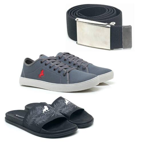 Kit composto por: 1 Tênis Casual+ 1 Chinelo Slide+ 1 Cinto