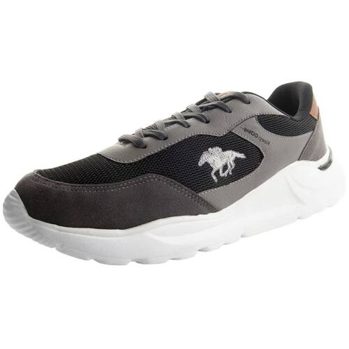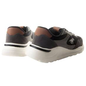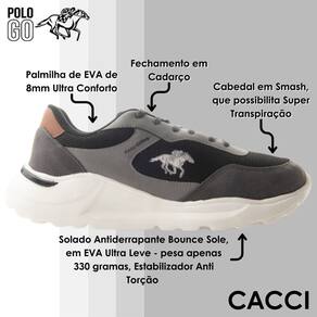 Moderno tênis jogging Polo GO Shareef com cabedal em smash, que possibilita super transpiração, couro e camurça ecológicos.