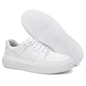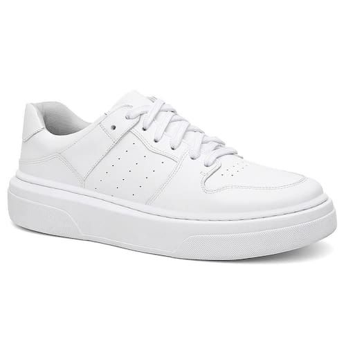Tênis Masculino Casual Couro Fechamento Cadarço Moderno - 44 - Branco