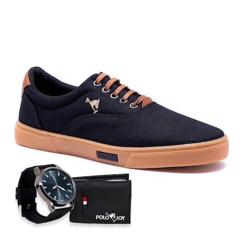 O Kit Tênis Polo Joy + Relógio e Carteira é o que você procura! O Tênis casual é confeccionado em tecido, o que possibilita a respiração dos pés devido ao material utilizado. Ideal para o dia a dia e trabalho. Com solado em borracha e tecnologia anatômica oferecendo um grande conforto ao caminhar. Possui fechamento em cadarço perfeito para eventos casuais. O Relógio de pulso é de pulseira de borracha moderno e a Carteira casual é confeccionada em tecido sintético. Kit completo para você ficar sempre na moda.