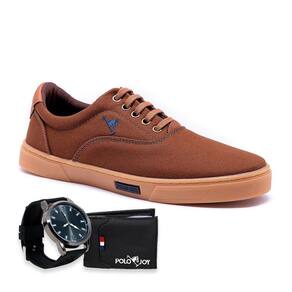O Kit Tênis Polo Joy + Relógio e Carteira é o que você procura! O Tênis casual é confeccionado em tecido, o que possibilita a respiração dos pés devido ao material utilizado. Ideal para o dia a dia e trabalho. Com solado em borracha e tecnologia anatômica oferecendo um grande conforto ao caminhar. Possui fechamento em cadarço perfeito para eventos casuais. O Relógio de pulso é de pulseira de borracha moderno e a Carteira casual é confeccionada em tecido sintético. Kit completo para você ficar sempre na moda.
