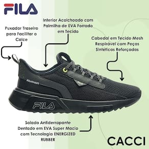 O Tênis Fila Freestyle apresenta uma combinação entre design esportivo e o visual trendy mais utilizado pelos fashionistas. Com inspiração no modelo Tormo e silhueta triangular, o calçado segue um visual disruptivo e moderno com detalhes estéticos que trazem sofisticação para o seu look, sem perder o conforto. Cabedal (parte superior do tênis) constituído de mescla de diferentes tipos de tramas em Mesh respirável com sobreposição de peças em material sintético. Possui acolchoado interno no colarinho para maior conforto, pontos perfurados nas regiões que necessitam de maior ventilação, etiqueta Fila personalizada na lingueta, palmilha em EVA com forração de tecido, patch Fila Letter emborrachado com relevo na lateral e aplicação de fita vertical no calcanhar com logo Fila Letter. O solado dentado e super macio conta com a tecnologia ENERGIZED RUBBER (composto de EVA com densidade média e toque emborrachado), que transforma o impacto da pisada em propulsão, garantindo um grip superior quando em contato com o solo, além de uma estética característica do streetwear.