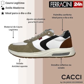 Versátil e funcional, este tênis é perfeito para complementar uma variedade de looks, desde os mais casuais até os mais formais. Seja para um dia de trabalho agitado ou para um momento de lazer, o Tênis Masculino Conforto Ferracini Vyper 9581-572 é a escolha ideal para homens que não abrem mão do estilo e do conforto em seu calçado. Invista em qualidade e sofisticação para seus pés com este tênis excepcional da Ferracini.