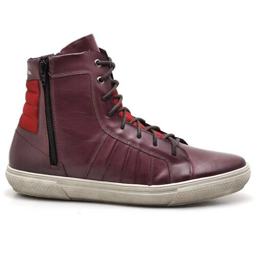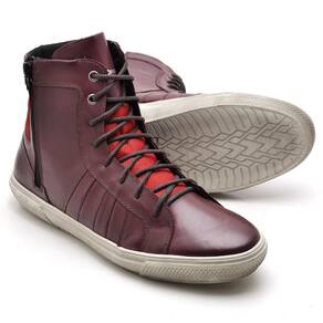 Tênis Masculino Couro Cadarço Cano Médio Zíper Moderno - 39 - Vinho