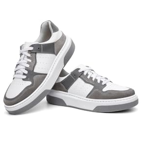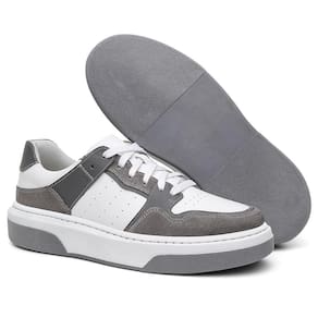 Tênis Masculino Couro Casual Fechamento Cadarço Moderno - 37 - Cinza