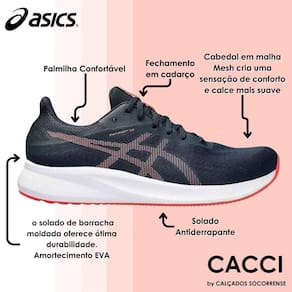 Uma camada de EVA na entressola garante uma resposta elástica e boa absorção de choque. Além disso, o solado de borracha moldada oferece ótima durabilidade.