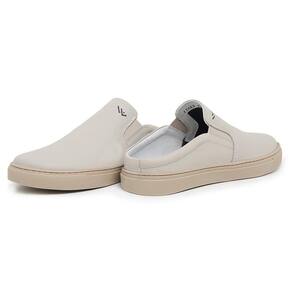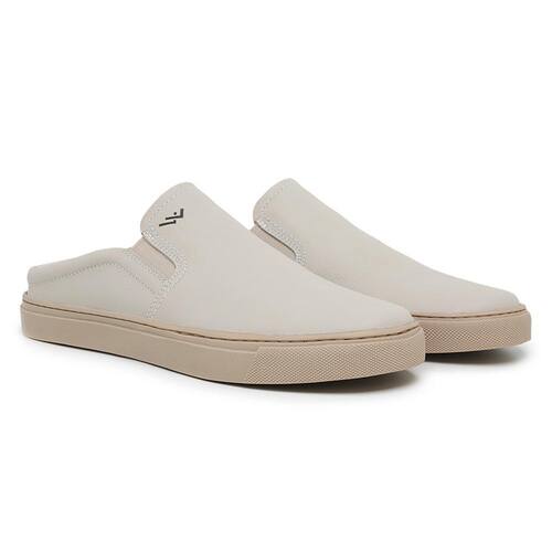 Tênis Masculino Mule Couro Calce Fácil Confortável Casual - 44 - Bege Claro