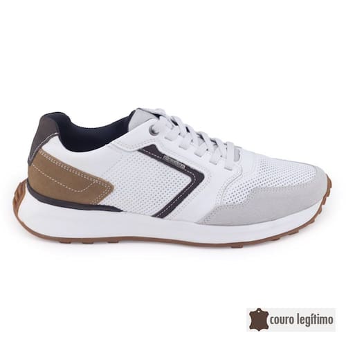 Tênis Masculino Pegada 110701 Couro cadarço elástic Amortech BRANCO/CAMEL - 38
